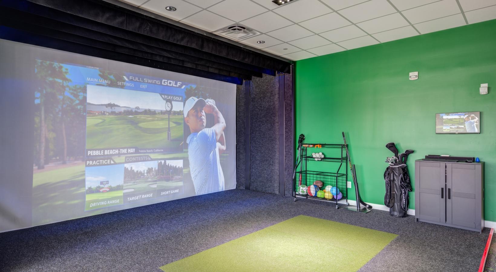 • a projector screen in a room