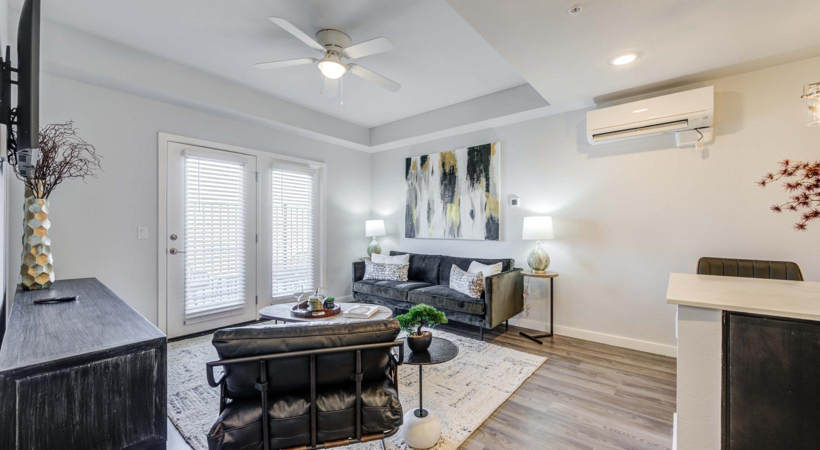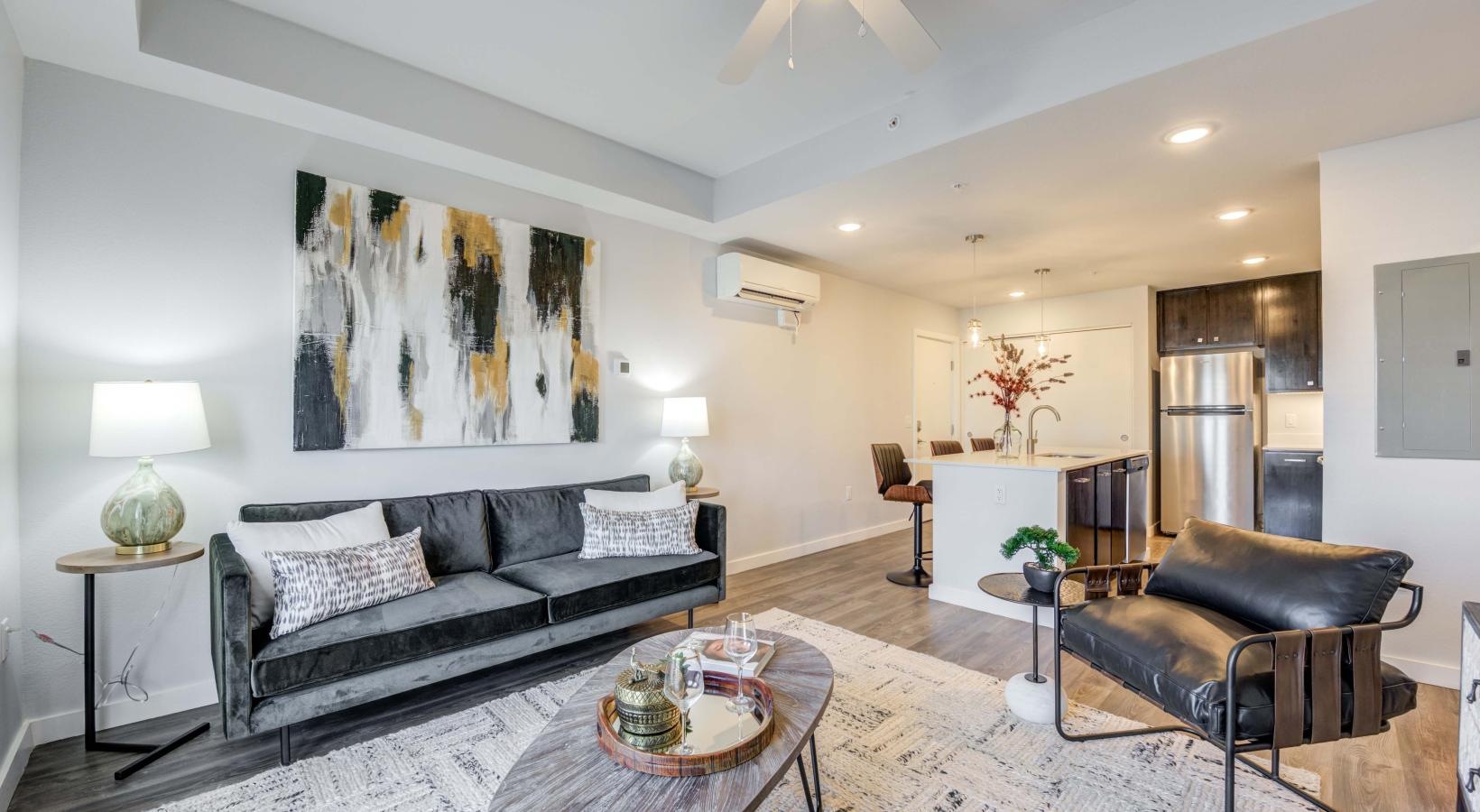 • a living room with a couch and a coffee table