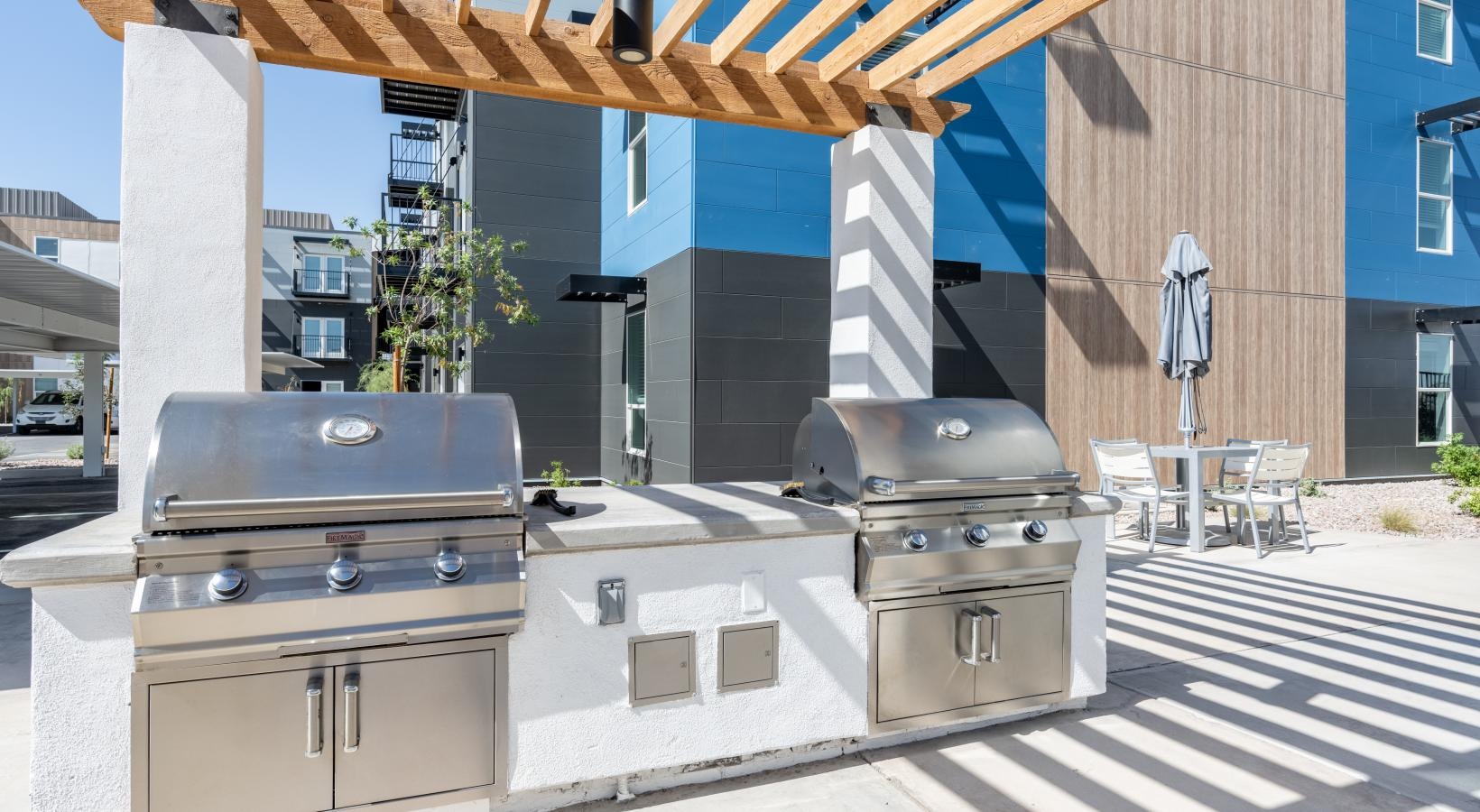 • a grill on a deck
